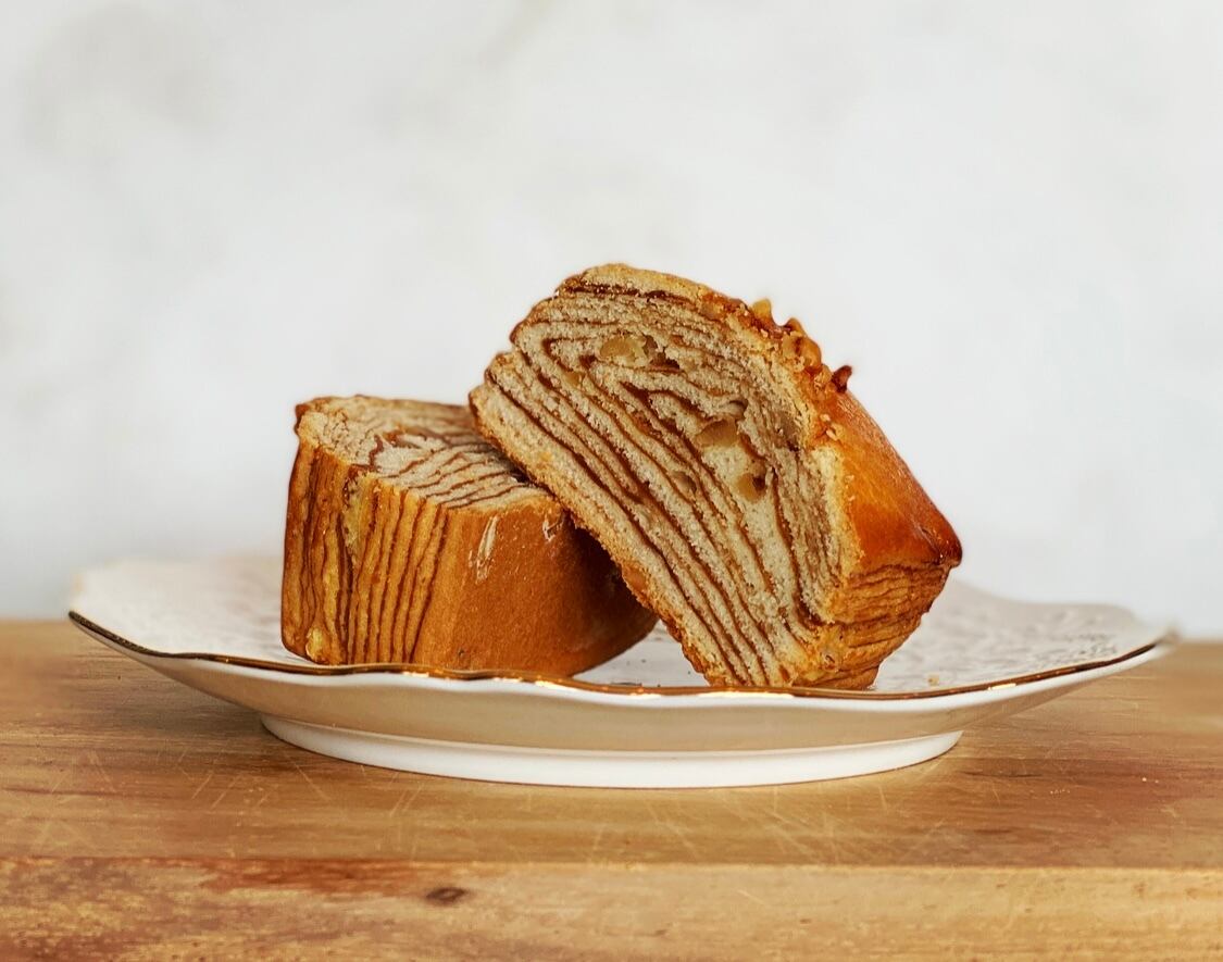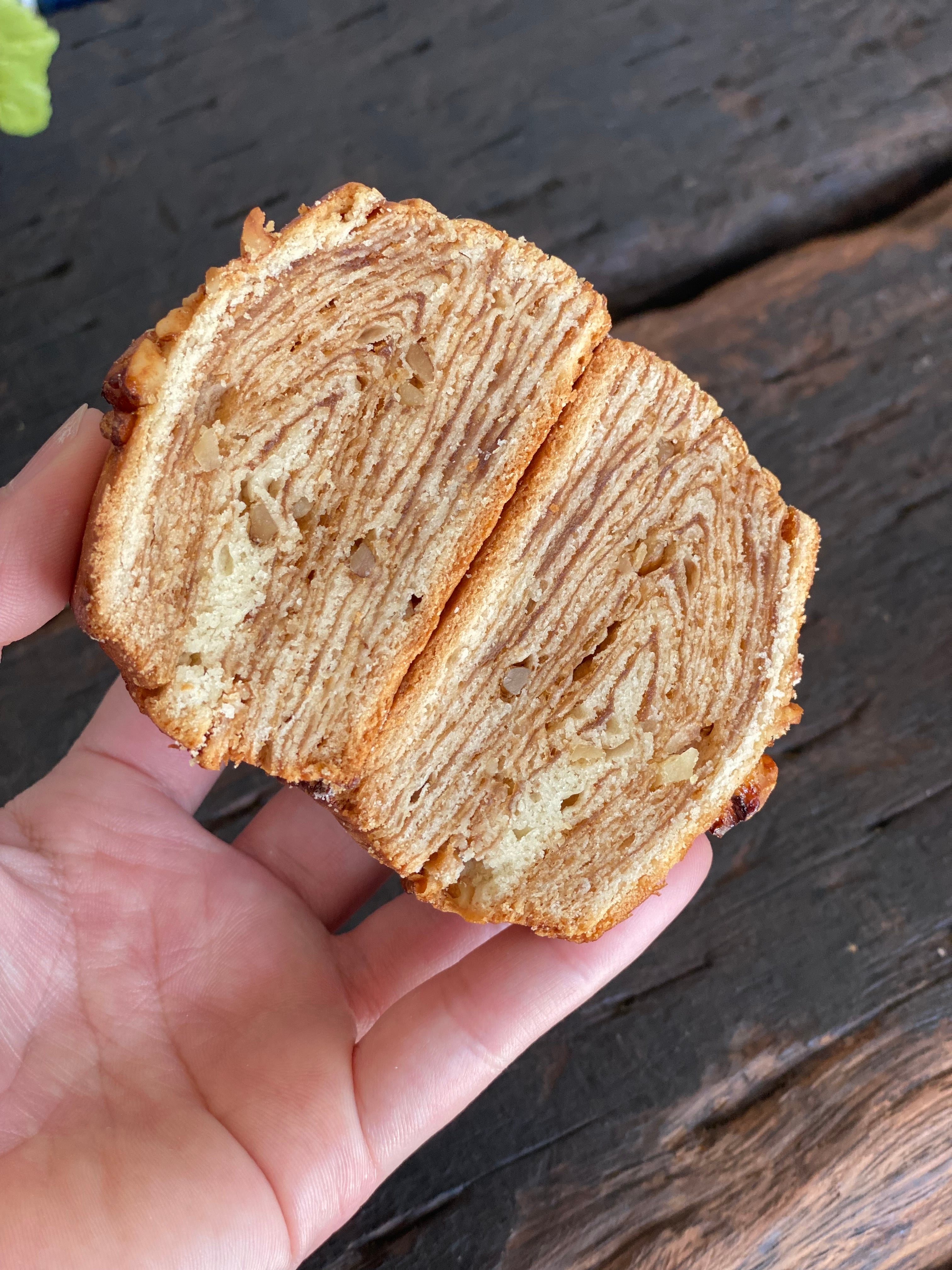 メープルを折り込んだ生地に、アクセントにクルミが入っています。